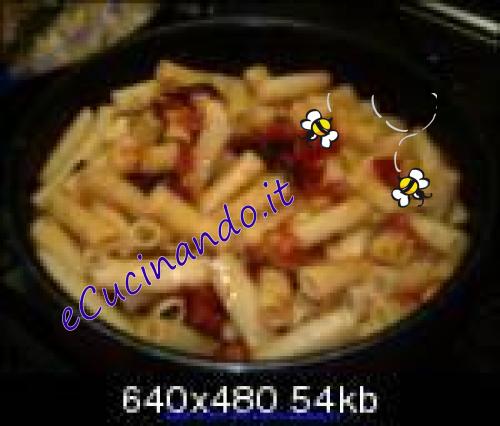 Cuocete i rigatoni bene al dente, scolateli e fateli saltare nella padella col sugo.