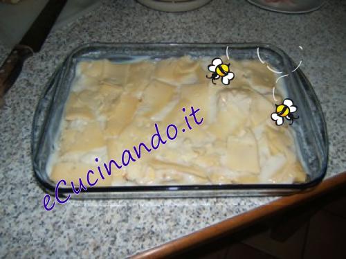 Alla fine coprire il tutto con il resto della besciamella e scaglie di fontina rimasta.