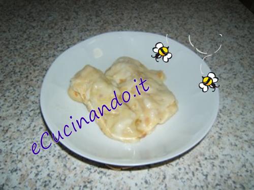 Per le crèpes diluire nel latte ed acqua la farina ed aggiungere le uova sbattendo bene il composto cercando di non fare schiuma, aggiungere anche l'olio evo e il sale, quando si è ottenuta una pastella liscia, lasciare riposare per 15 minuti minimo.