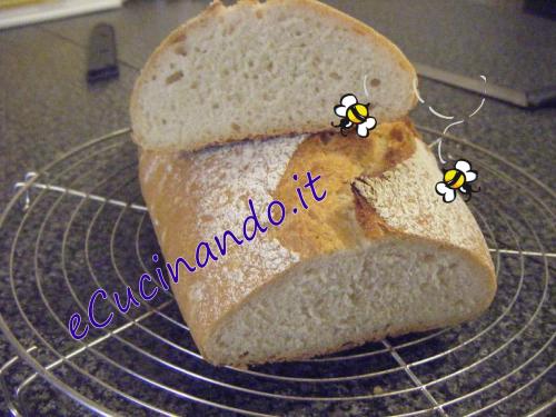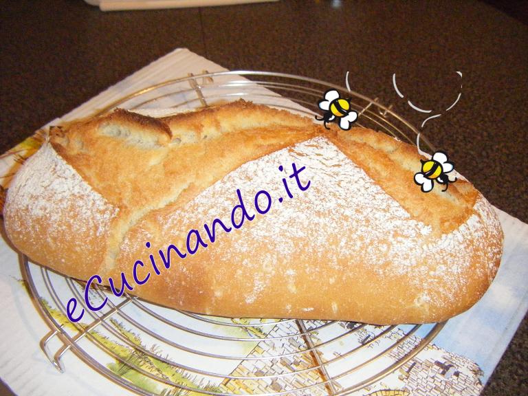 Togliere immediatamente il pane dalla pentola, e posarlo su una griglia alta abbastanza affinchè l'umidità del pane evapori senza rammollire la crosta. Il pane canta ( sfrigola fortemente) per alcuni minuti.